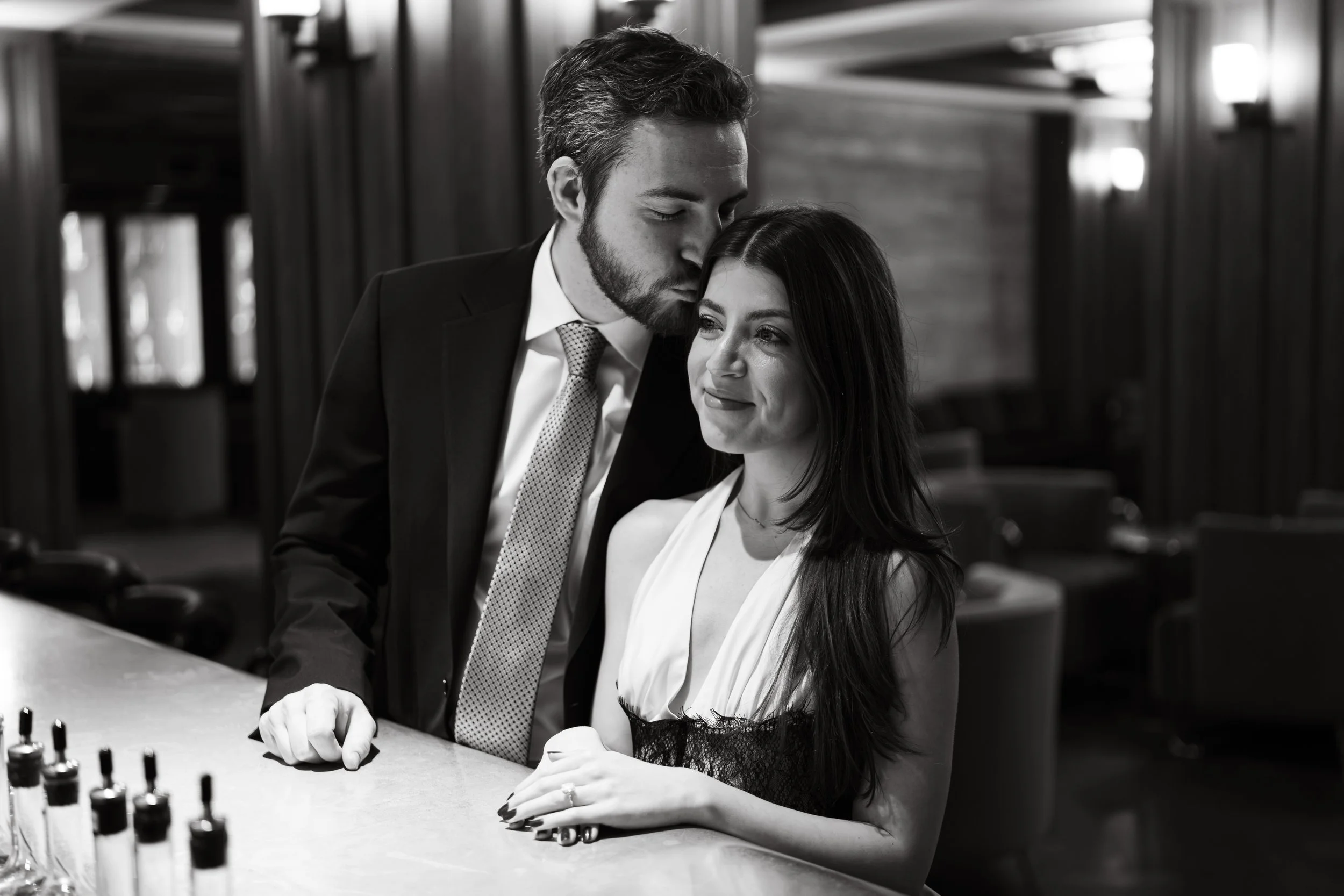We got lucky—really lucky. It’s rare for anyone to get Silver Lyan entirely to themselves, but that day we had free run of the space. The polished wood, moody lighting, and soft golden tones fit the couple perfectly.